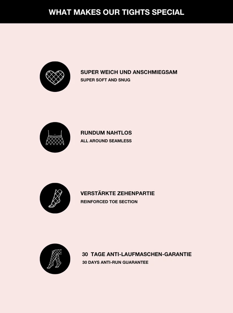 - Material of fishnet tights: 78% polyamide and 22% elastane