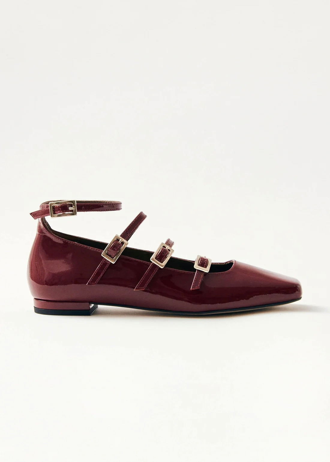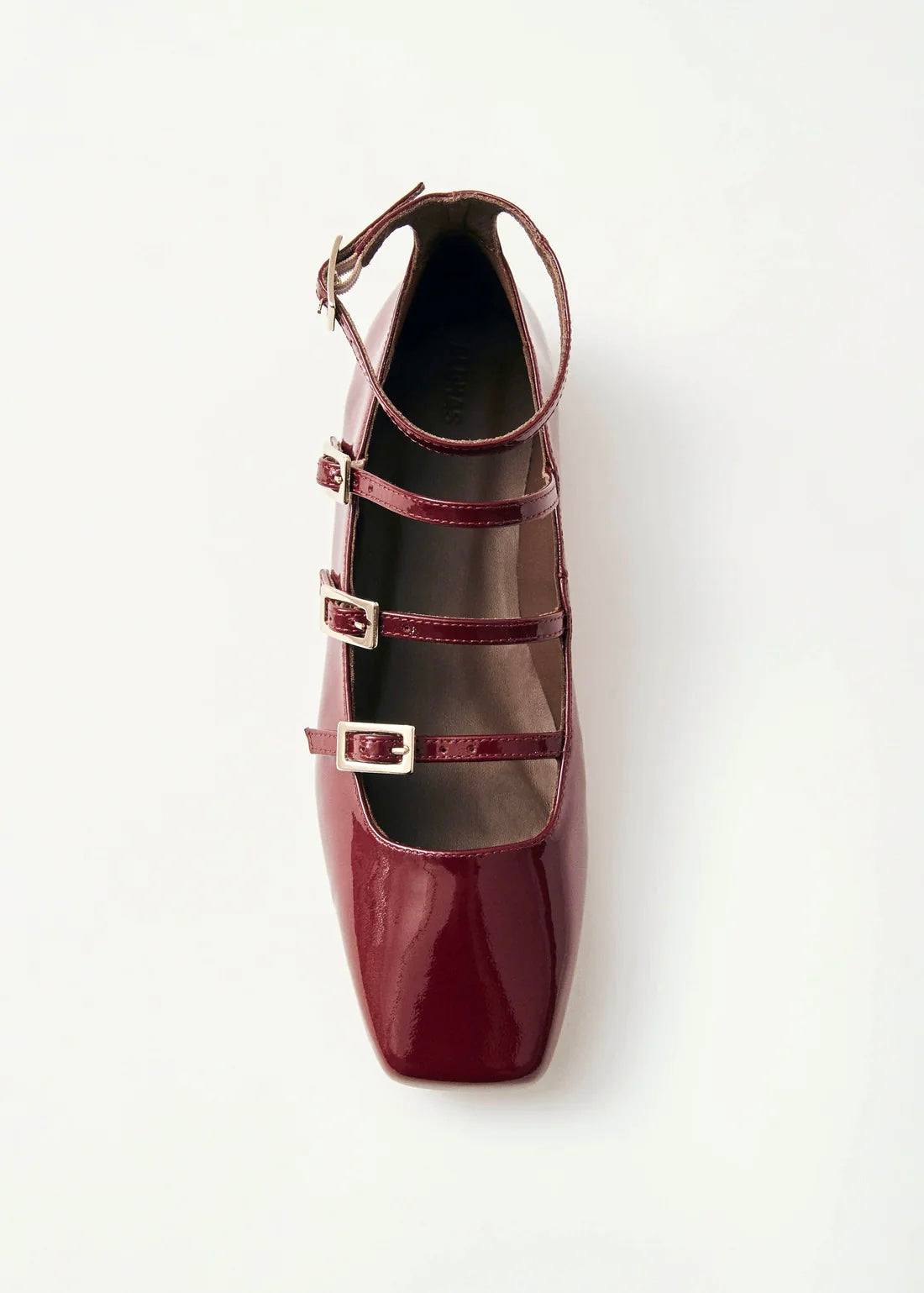 Dieser wunderschöne Ballerina von Alohas ist eine Hommage an die Mary Jane Modelle! Die Leder Sandale ist mit Bordeaux rotem Lack überzogen, was ihn nochmal extra schick macht. Eine absolute Style Icon im Büro, zu Kleidern oder Jeans!