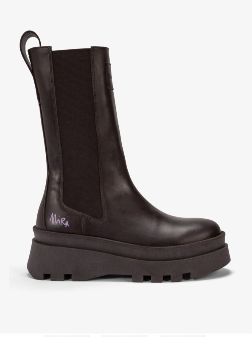 Add something special to your wardrobe with the brown Moscow Mule boot with flat sole and maxi stretch inserts on the side. The boat is hand-signed and painted in Nira Rubens' workshop, which gives the boat that very unique extra.