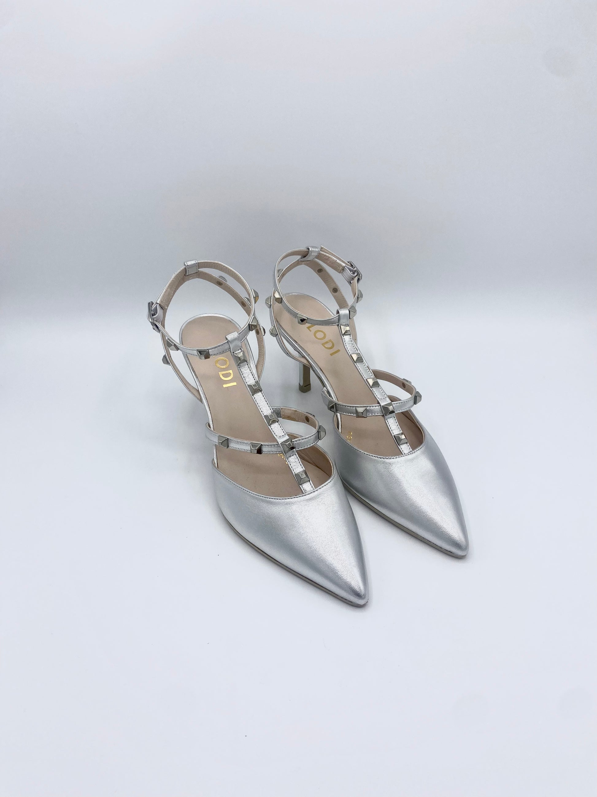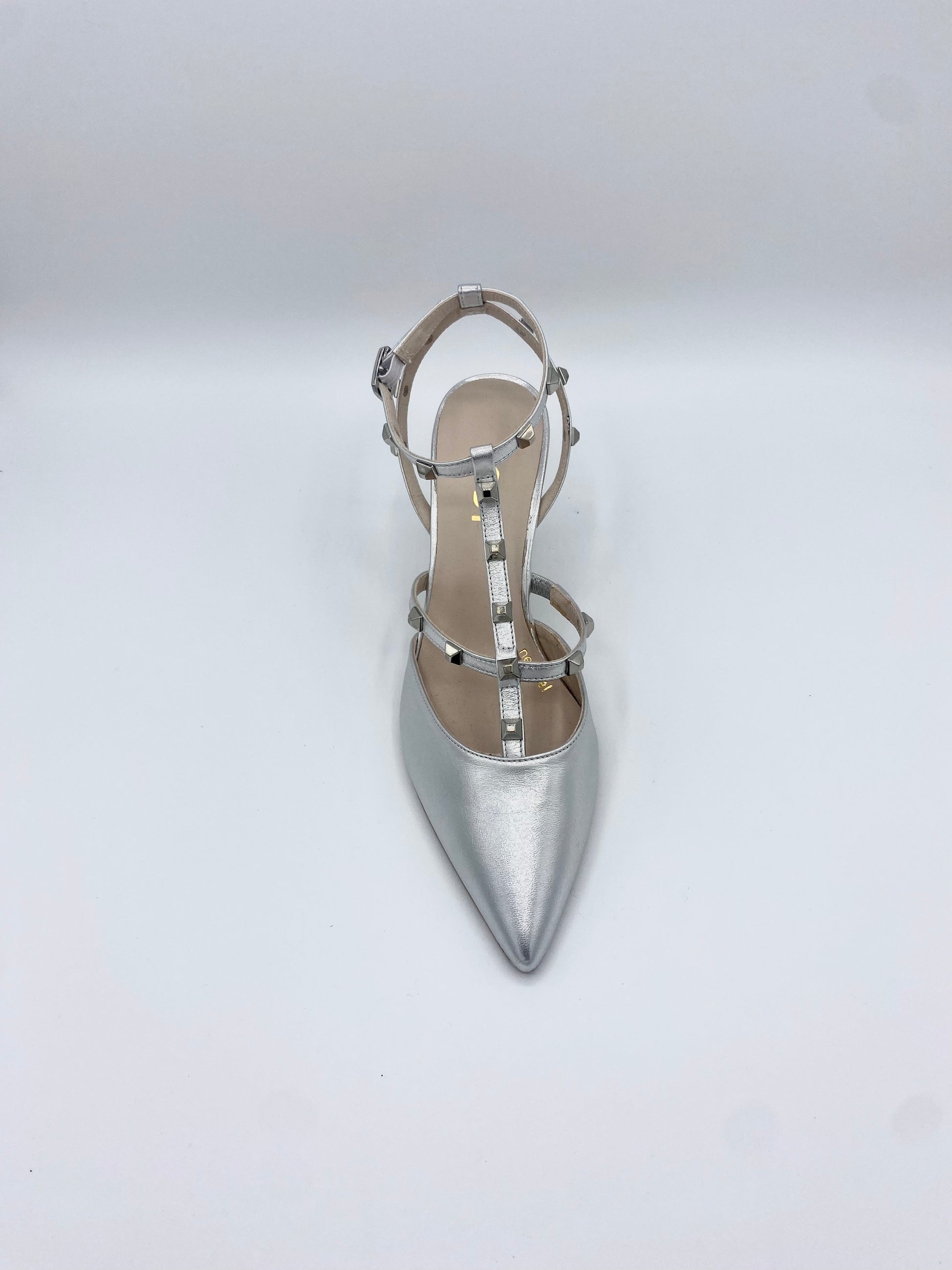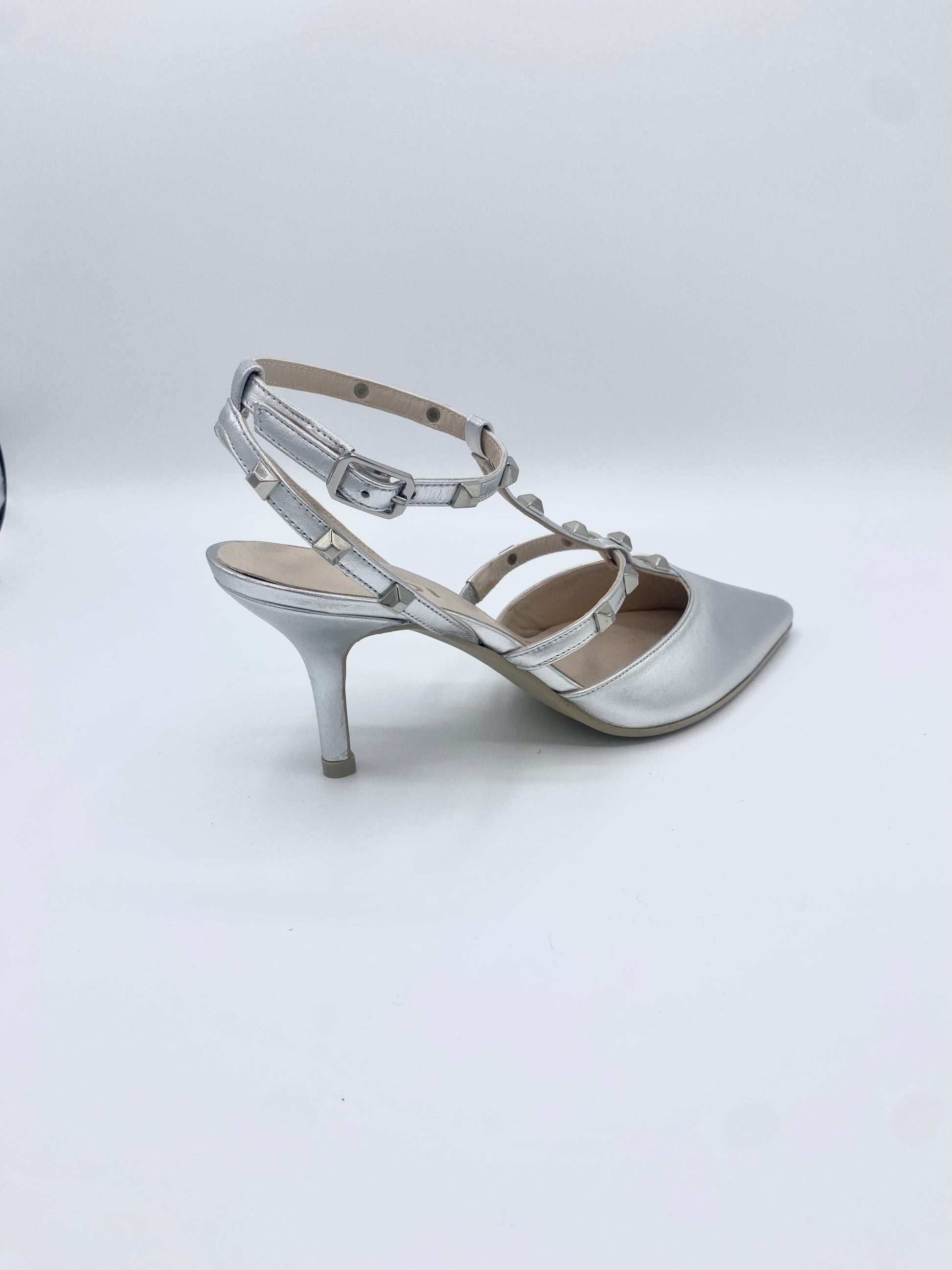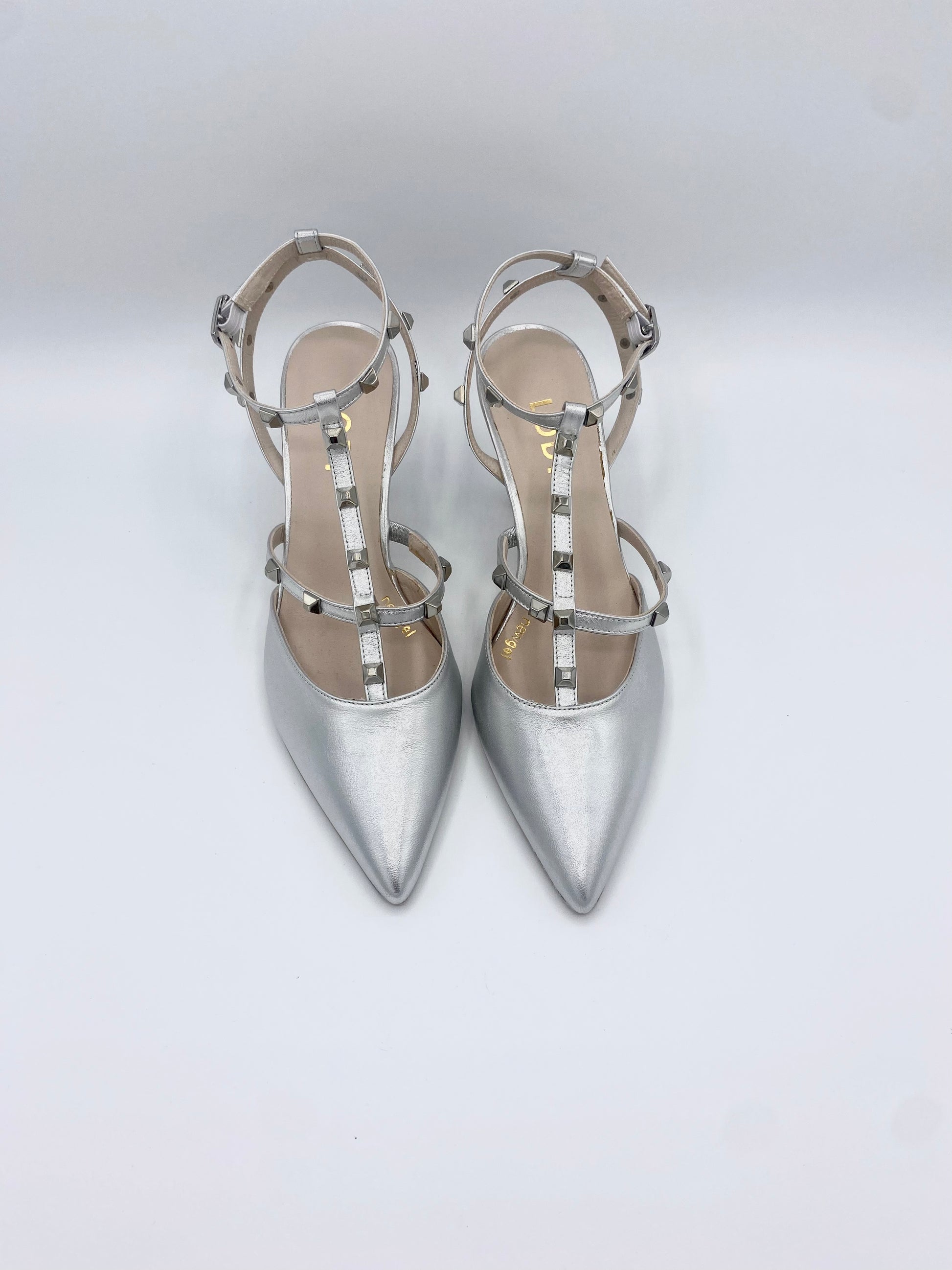 Die klassische Silhouette des Heels verleiht dem Schuh eine besondere Eleganz, während die silbernen Nieten den coolen Touch hervorheben!