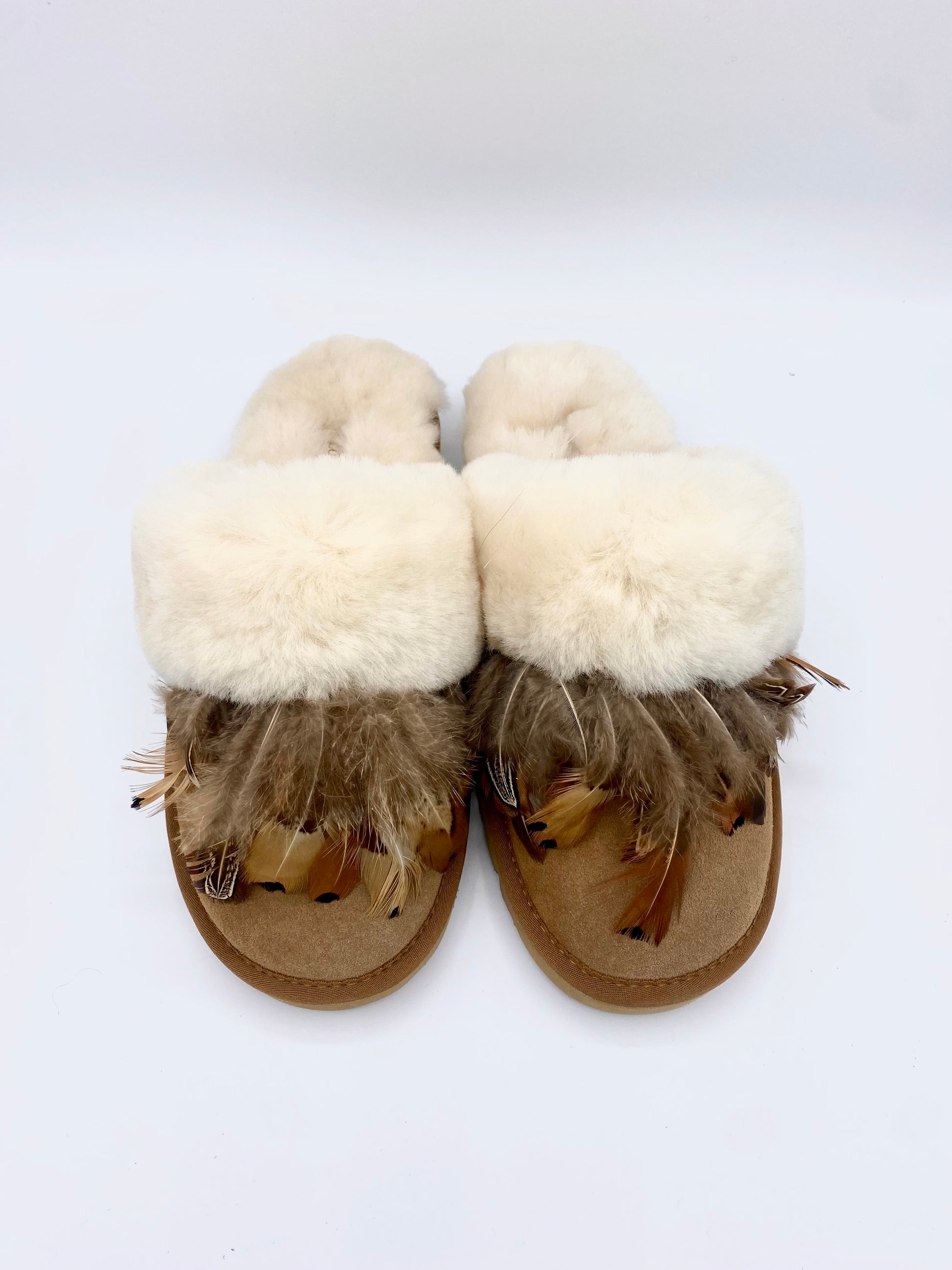 Handverziert mit echten Federn und unserem Zazashoo Anhänger sind diese Puschel-Slipper purer Luxus für eure Füße! So bringt ihr auf jeden Fall Style ins Haus und sie sind ein absoluter Hingucker, wenn ihr unterwegs seid. JA! Ihr könnt diese Slipper auch draussen anziehen. Zu einer ausgestellten Hose oder einer hoch taillierten Ballonjeans und einem Boho-Chic Top sehen sie einfach Hammer aus. Tragt an kälteren Tagen einen gestrickten Pulli und einen Oversize Mantel in Beige, Braun oder Weiss. An regnerischen Tagen sollten Eure Slipper jedoch zu Hause bleiben.