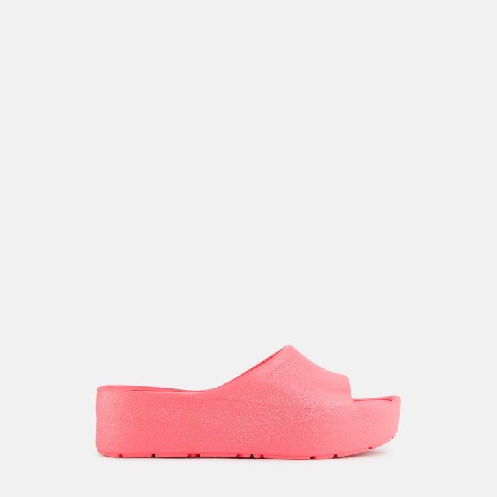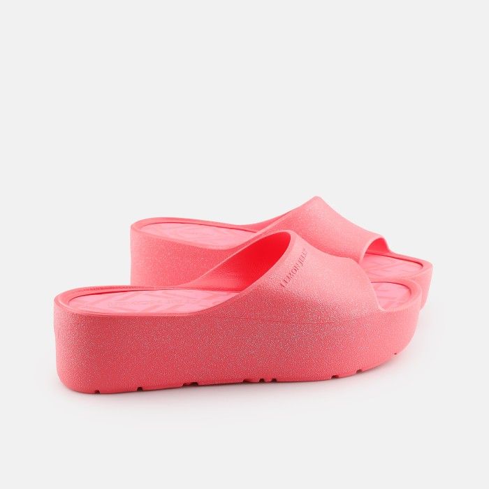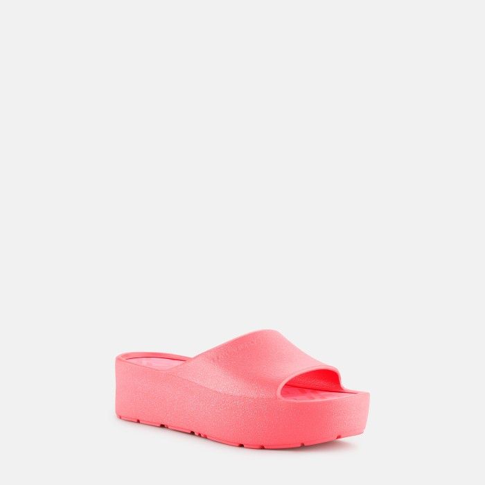Die rosa pinken Sommer-Slipper in der Special Edition mit einem feinen Glitzer-Finish und der Plateau-Sohle, sind nicht nur wahnsinnig leicht und bequem, sondern auch aus hochwertigen veganen Materialien in Portugal hergestellt, mit saubeer Energie in der gesamten Produktion!