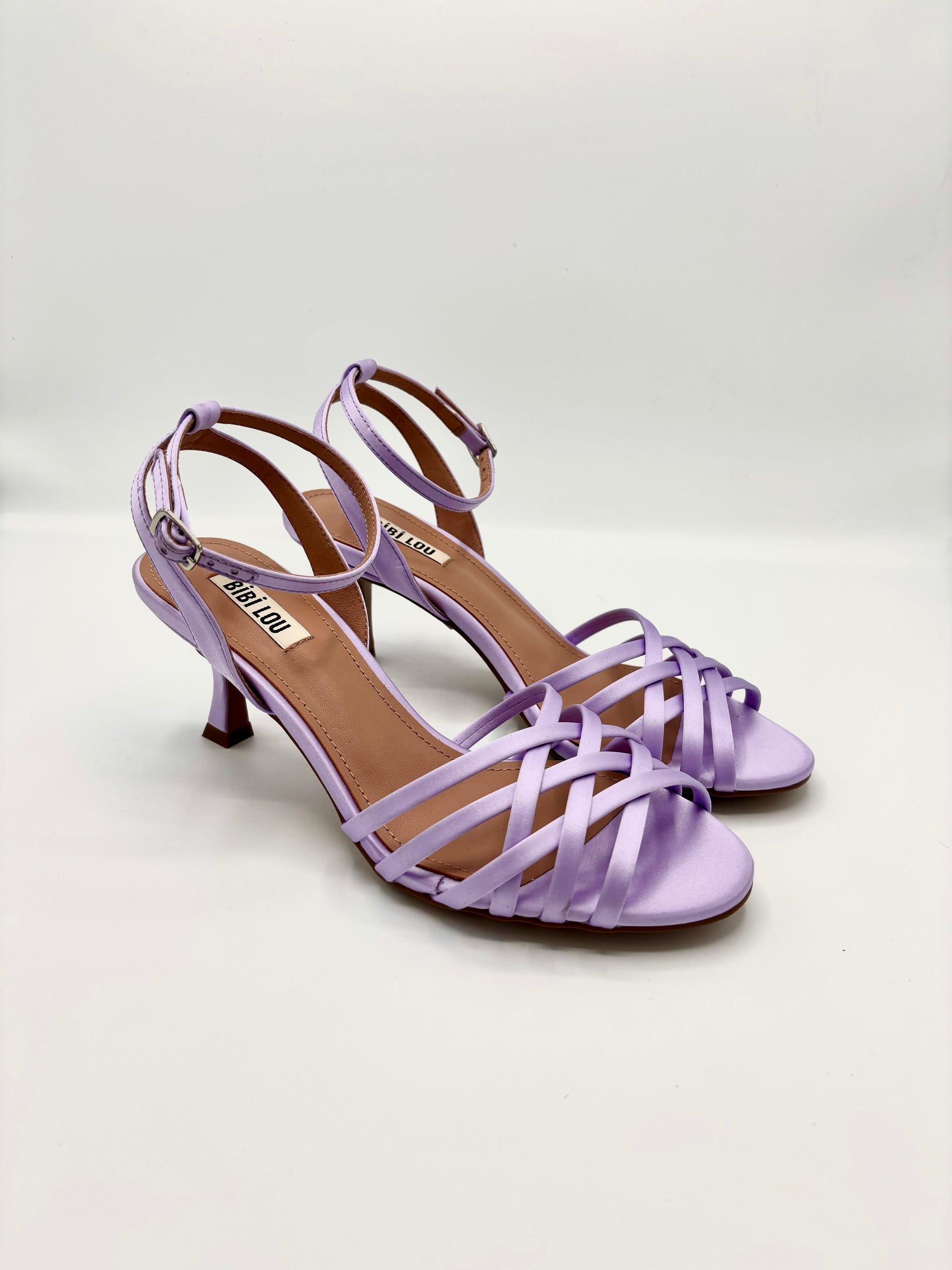 Diese hübsche Leder-Sandale mit dem mittelhohe Absatz von Bibi Lou ist wunderbar geeignet für jegliche Events zu schicken Kleidern, auf denen man auch lange aushalten möchte. Der zarte Fliederton in dem schimmernden Satin passt zu jeglichen Farben und wirkt sehr elegant sommerlich!