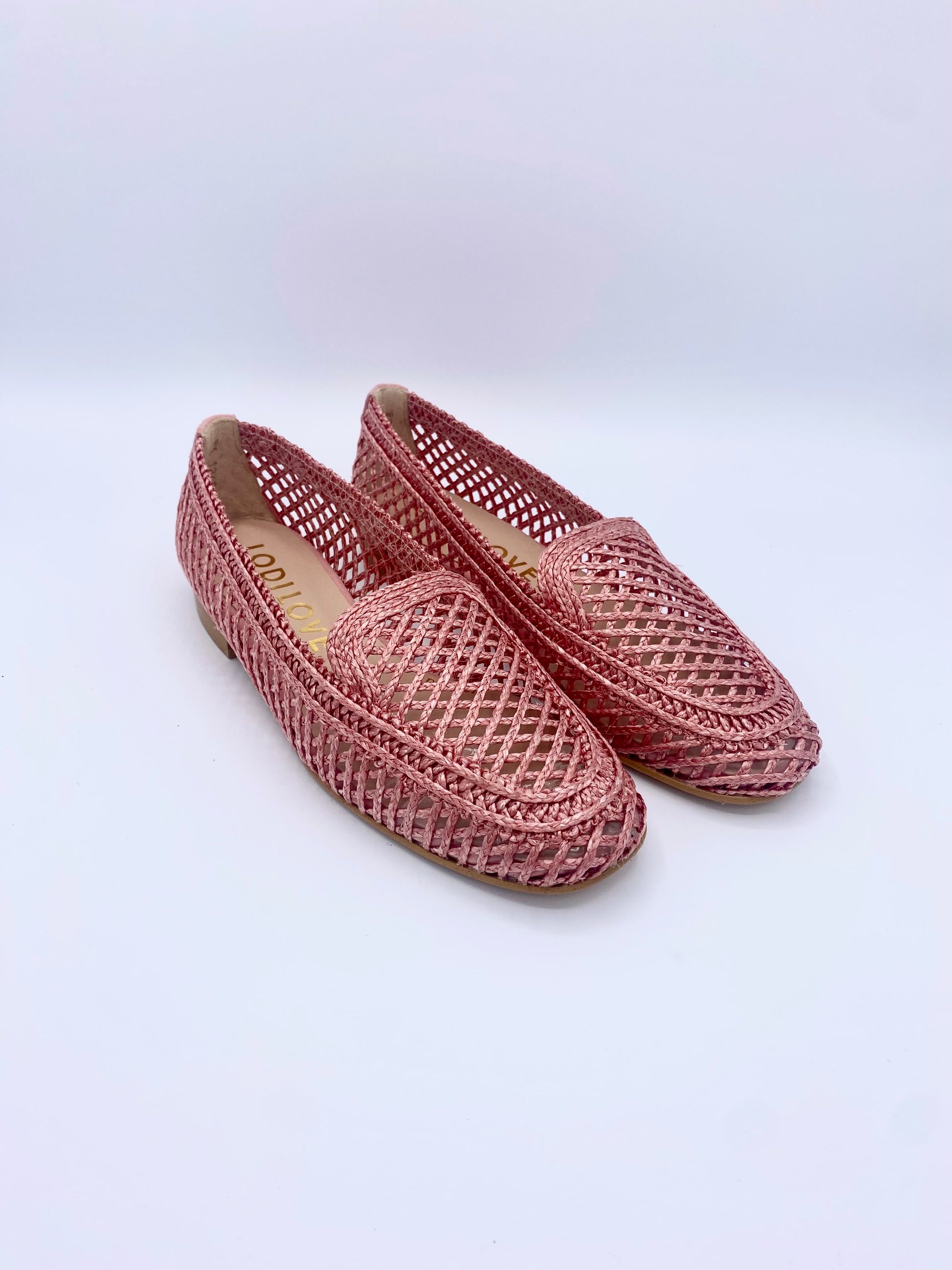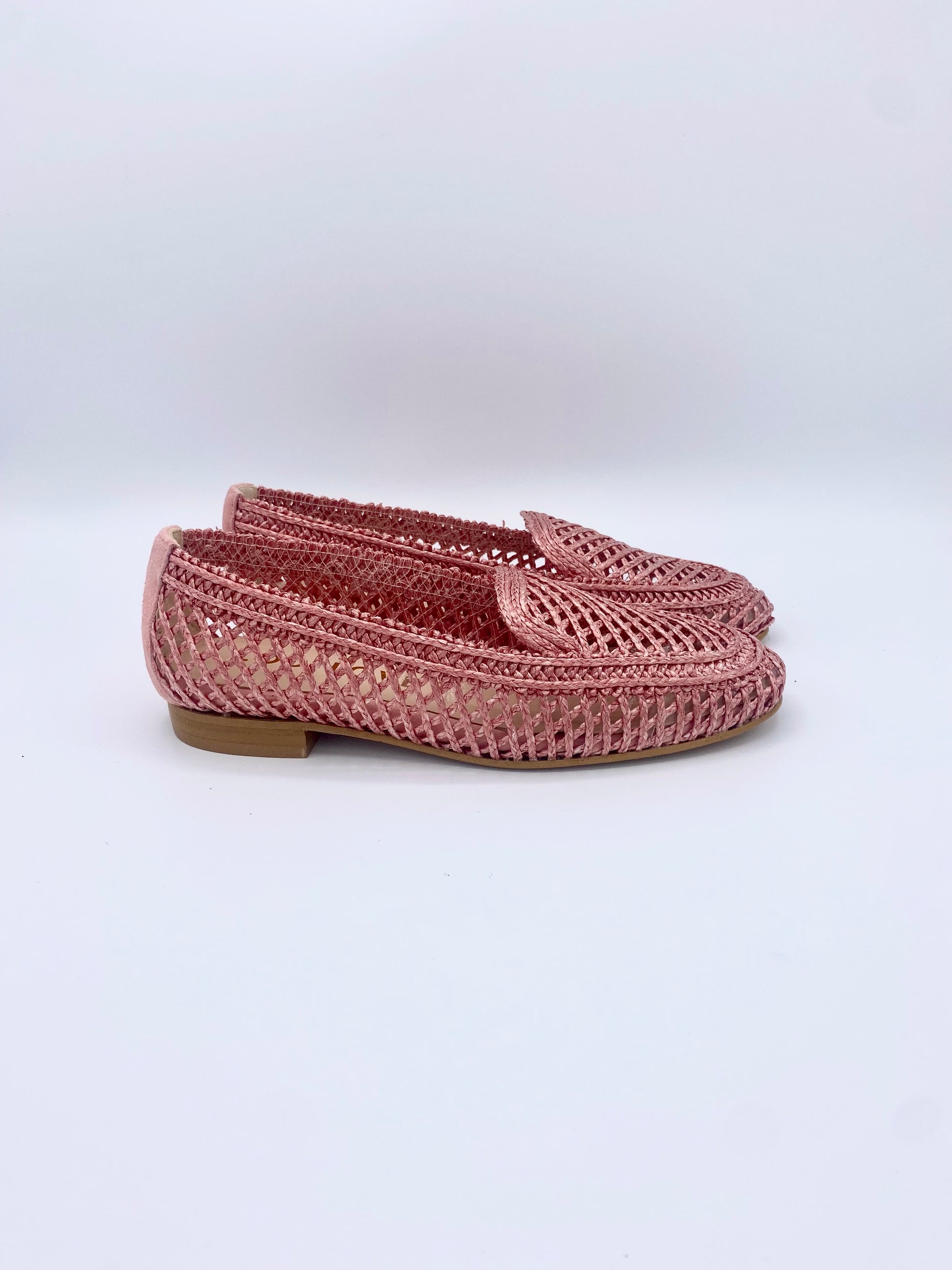 Schlichter, gehäkelter Sommerloafer von Lodi mit einer tollen Farbigkeit in einem zarten metallischen Roséton.
